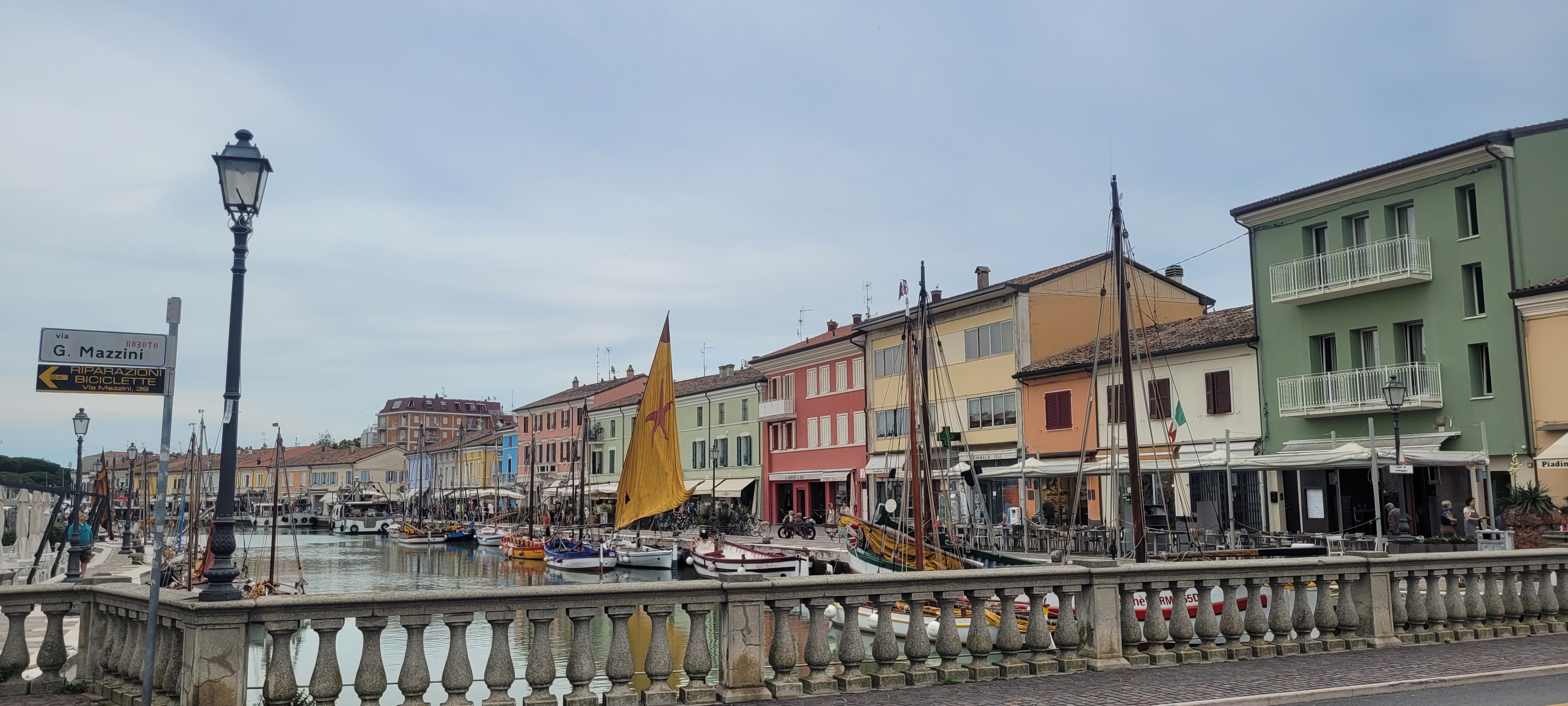 Der Tag beginnt mit einem Spaziergang entlang der Strandpromenade, wo bunte Sonnenschirme und Liegen bereits auf Badegäste warten. Das Wasser ist angenehm warm, ruhig und lädt zu einem erfrischenden Bad ein. Zwischendurch kann man sich in einer der vielen „Bagni“ – den typischen italienischen Strandbädern – mit einem Cappuccino oder einem Gelato stärken. Am späten Nachmittag lohnt sich ein Bummel durch das Zentrum von Cesenatico. Entlang des Porto Canale Leonardesco schaukeln historische Fischerboote im Wasser, und in den kleinen Restaurants wird fangfrischer Fisch serviert. Die Gassen sind gesäumt von Eisdielen, Boutiquen und Straßencafés, wo man das lebendige Treiben beobachten kann. Für Aktive bietet Cesenatico zahlreiche Möglichkeiten: Fahrradtouren ins Hinterland, Segeln, Beachvolleyball oder einfach eine Bootsfahrt entlang der Küste.