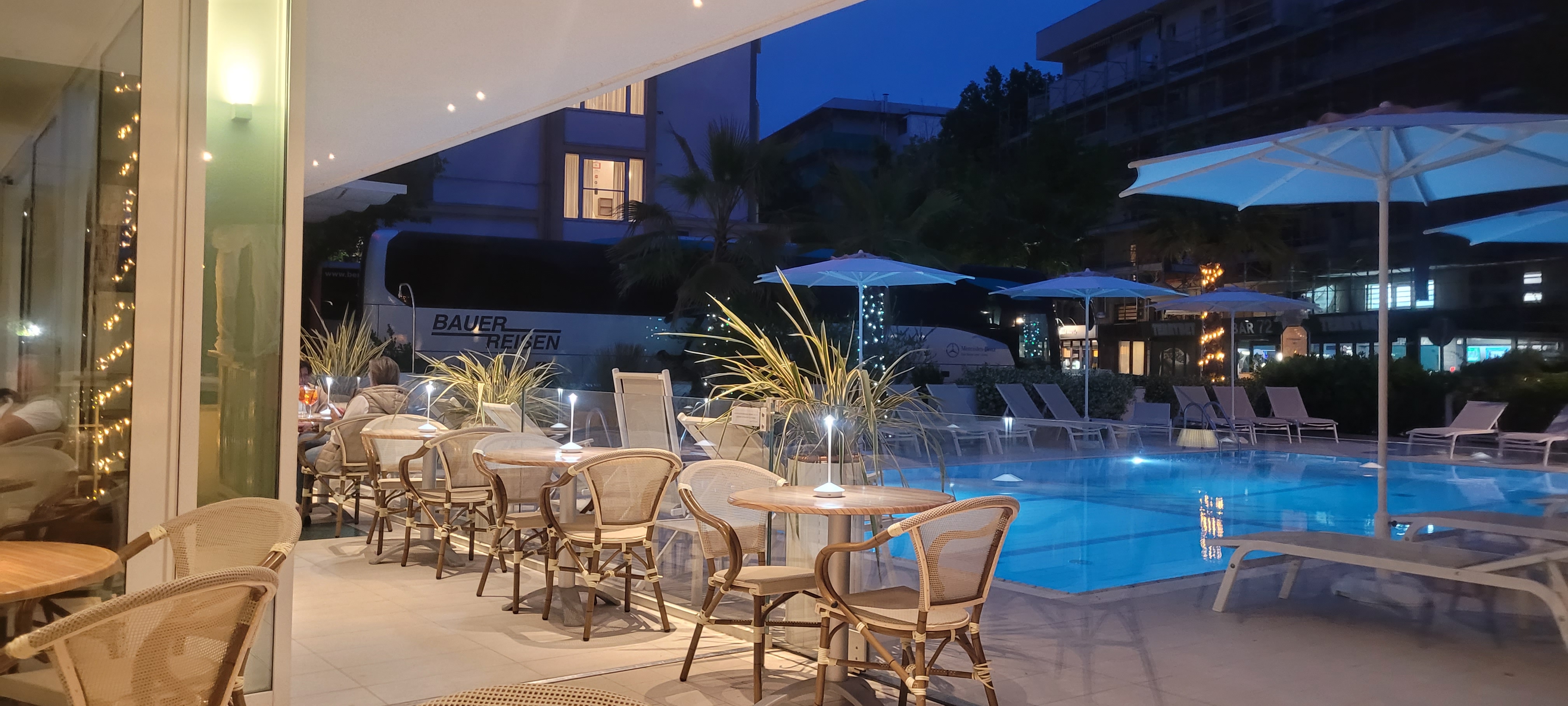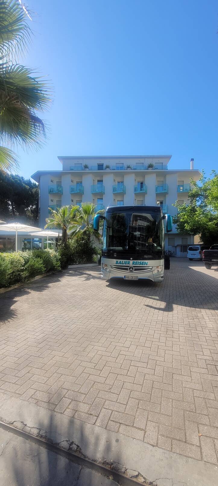 wir starten bereits am Vorabend. Auf Grund des bequemen Reisebusses können Sie sich zurücklehnen. Am Vormittag erreichen Sie Ihren Urlaubsort. Sie wohnen im familiengeführen ***Biondi Hotel, nur wenige Schritte vom Meer entfernt. Das Hotel hat einen Pool für Erwachsene und einen Kinderbereich. Die Sonnenschirme und Liegen sind am Privatstrand bereits inklusive. Die Zimmer verfügen alle über eine Klimaanlage, WLAN, Safe, Balkon und Bad mit DU/WC und Föhn, Nach dem Einchecken können Sie bereits das erste Bad in der Adria nehmen.