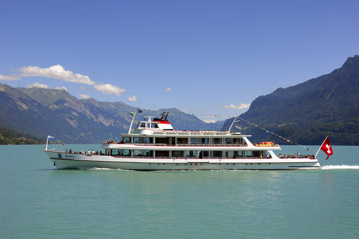 Ahoi, wir stechen in See. Ihr Ausflug auf den Brienzersee beginnt an der Schiffsanlegestelle in Interlaken. Während der Schifffahrt tauchen Sie in die wunderschöne Naturlandschaft ein. Mächtige Bergflanken, dichte Wälder, glasklare Bäche und Wasserfälle bilden die wunderschöne Szenerie um Sie herum. Der Brienzersee ist ein Smaragd inmitten der Berner Oberländer Alpen. Ihr Schiff dockt unterhalb des Grandhotels Giessbach an. Nun steigen Sie ein in die älteste Standseilbahn Europas. Auf der fünfminütigen Bahnfahrt geht es durch den Wald, über Brücken und entlang von Wasserfällen. Das nostalgische Grandhotel lädt dazu ein, zu verweilen während sich die atemberaubende Sicht über den ganzen Brienzersee ausweitet. Die Weiterfahrt mit dem Schiff geht ins Dörfchen Brienz, welches auch liebevoll das «Schnitzlerdorf» genannt wird. Die lange Tradition der Holzverarbeitung ist noch heute sichtbar.