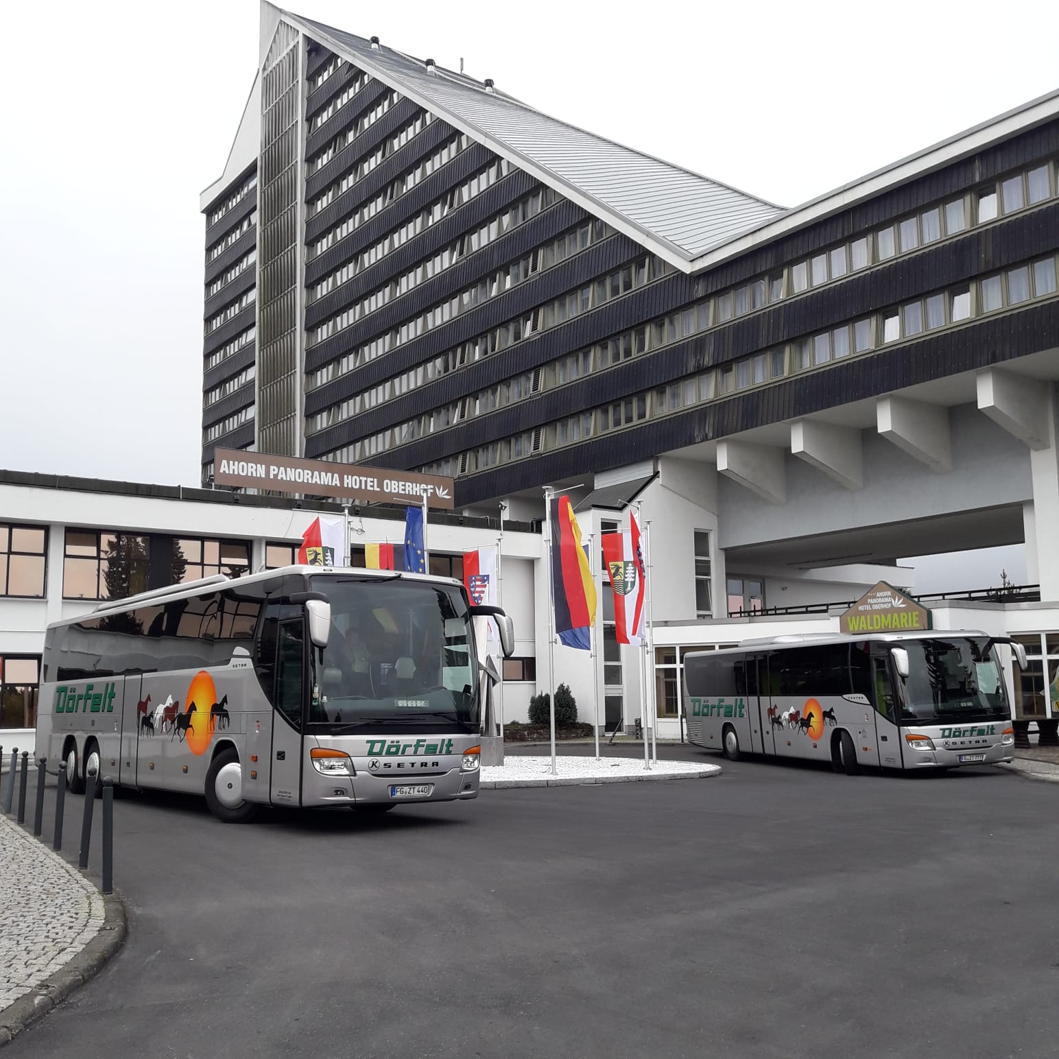 Heute reisen Sie in den schönen Thüringer Wald und beziehen Ihre Zimmer im 3* Ahorn Hotel Panorama Oberhof. In 815 m Höhe, auf dem Kamm des Thüringer Waldes gelegen, befindet es sich in zentraler aber ruhiger Lage, nur fünf Gehminuten vom Ortskern des bekannten Erholungsortes entfernt. Das komfortable Haus verfügt über Hallenbad, Sauna, Fitnessraum, Wellnessabteilung und Eventhalle und verwöhnt seine Gäste mit Thüringer Gastlichkeit sowie einer sehr guten regionalen und internationalen Küche. Zum Abendessen werden Sie mit einem vielfältigen und abwechslungsreichen Buffet erwartet. Die Zimmer sind zeitgemäß mit W-LAN, TV, Telefon und Badezimmer ausgestattet.