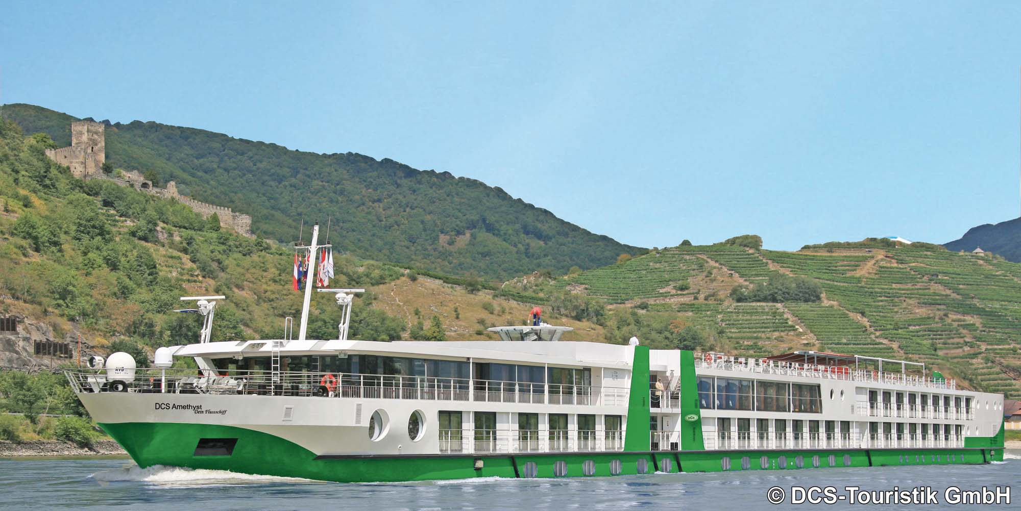 Entspannt und komfortabel auf der zeitlos schönen DCS Amethyst 1**** entlang der Donau reisen. Auf dem Sonnendeck können Sie die vorbeiziehende, traumhafte Landschaft genießen. Das Panoramarestaurant lädt bereits am Morgen zu einem reichhaltigen Frühstücksbuffet ein, zum Mittag- und Abendessen freuen Sie sich auf kulinarische Köstlichkeiten. Ebenso einladend ist die verglaste Panoramalounge mit ihrer entspannten Atmosphäre und einem herrlichen Ausblick auf den Fluss. Ein Lift sorgt für bequeme Verbindungen zwischen dem Mittel- und dem Oberdeck – ideal für komfortables Reisen. Eine entspannende Massage bringt Körper und Geist in Einklang, und auch die gemütliche Leseecke ist ein perfekter Ort zum Relaxen. Die stilvollen Außenkabinen sind ausgestattet mit einem Doppelbett (14 m²), Dusche/WC, TV, Radio, Telefon, Safe, Klimaanlage und Föhn.